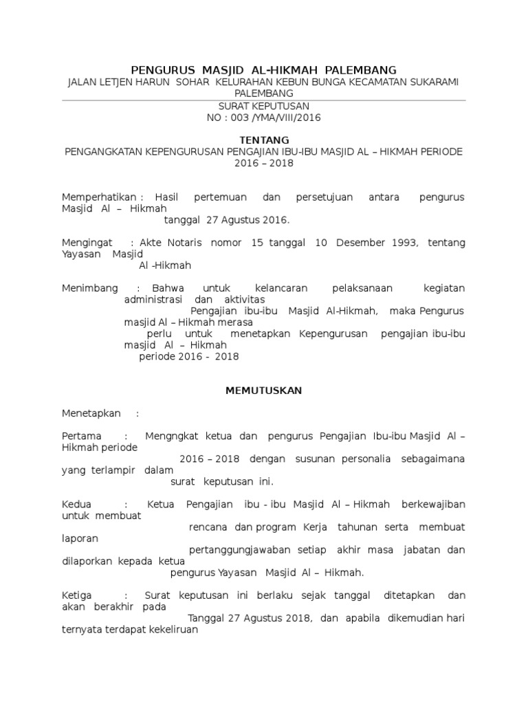 Cara Membuat Surat Keputusan Pengurus Masjid Raya Baiturrahman